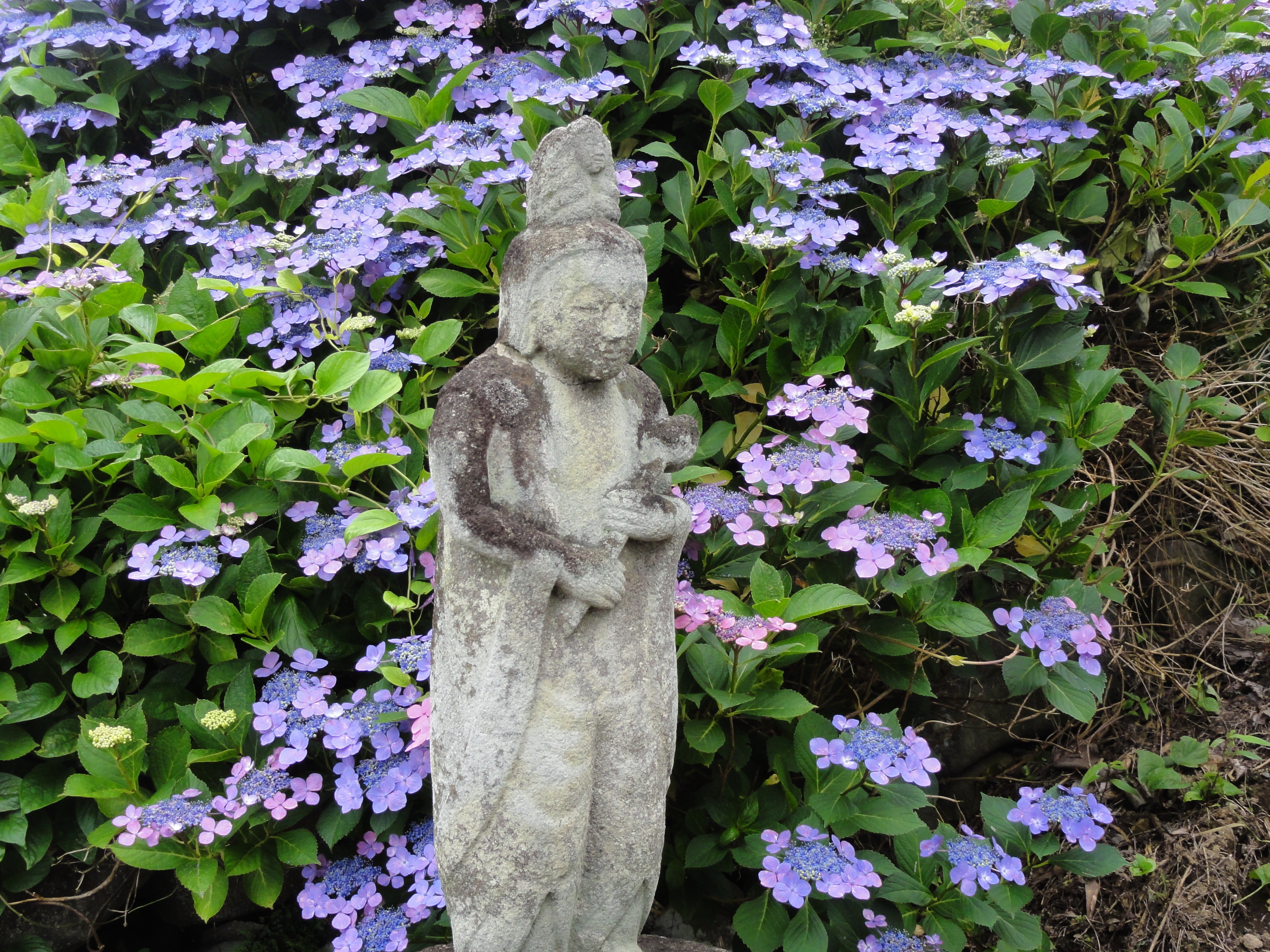 境内の周囲の青葉若葉が耀いて目にしみます。ひっきりなしに聞こえてくる野鳥のさえずりが心を和ませてくれます。夜になって外に出ると、木々の涼しげなざわめきが、軟らかな風に乗って心地よく聞こえてきます。浴室の窓を開けて、湯船に首まで浸かり耳を澄ますと、遠近の田んぼで蛙の合唱が賑やかです。山里の暮らしでしか味わうことの出来ない豊かさと、幸福感と、楽しさを満喫できるこの季節が、私は大好きです。